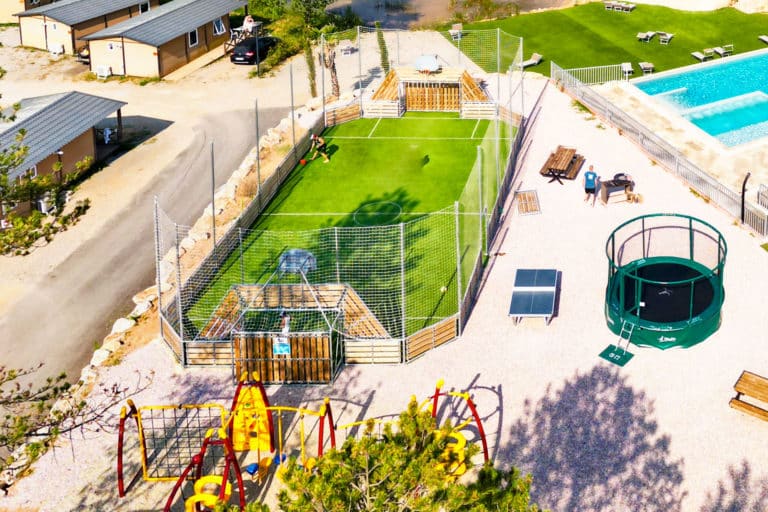 En el camping hay una pista polideportiva y un estadio municipal. Además, los niños tienen acceso a un parque infantil con cama elástica.